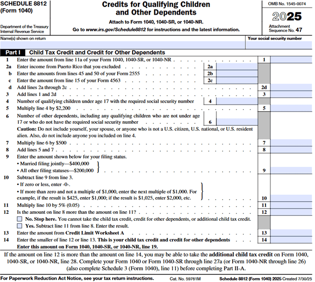 A portion of the child tax credit is refundable for certain individuals. Individuals complete Part II of IRS Schedule 8812 to complete the refundable portion of the credit, called the additional child tax credit.